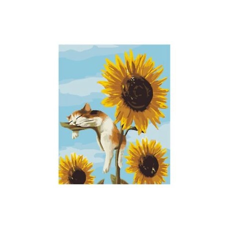 2X(Frameless Cats Sunflowers Oil Painting DIY Digital Coloring Wall Arts Pi V8K8