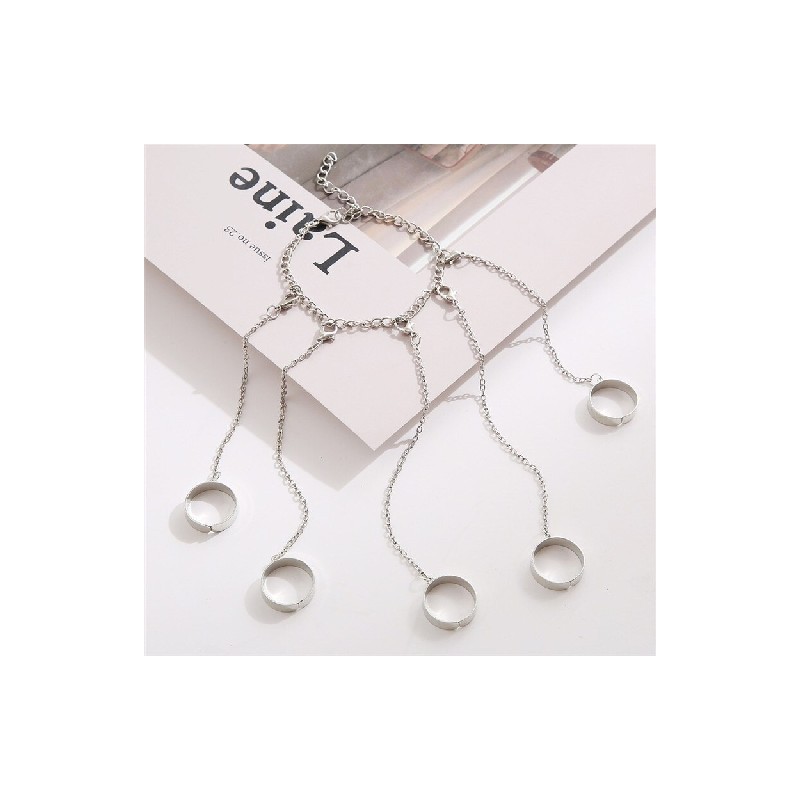 Punk Geometric Silver Color Chain Wrist Bracelet For Women Men Ring Charm Set Couple Emo Fashion Jewellery Gifts Pulsera Mujer
