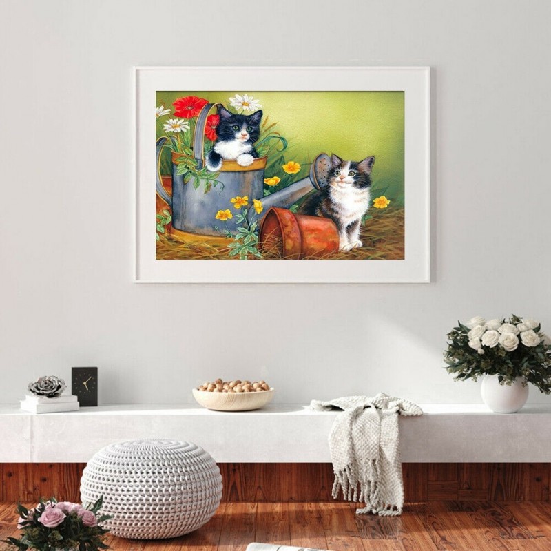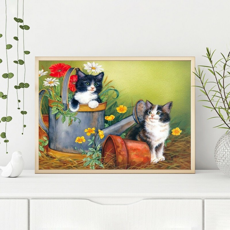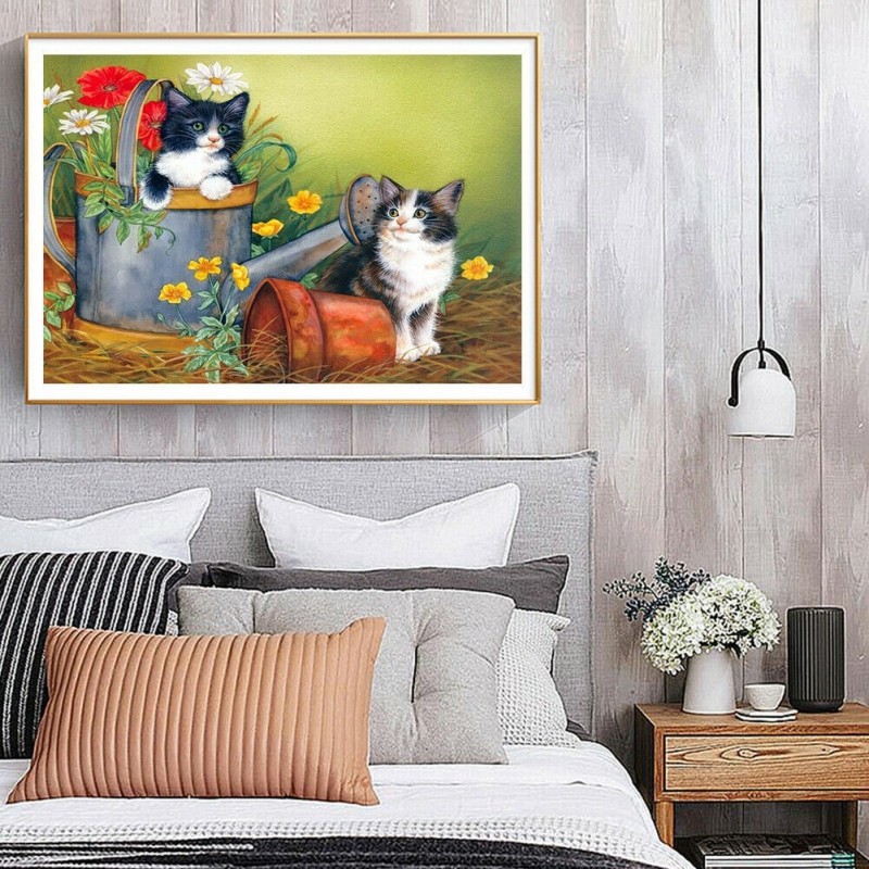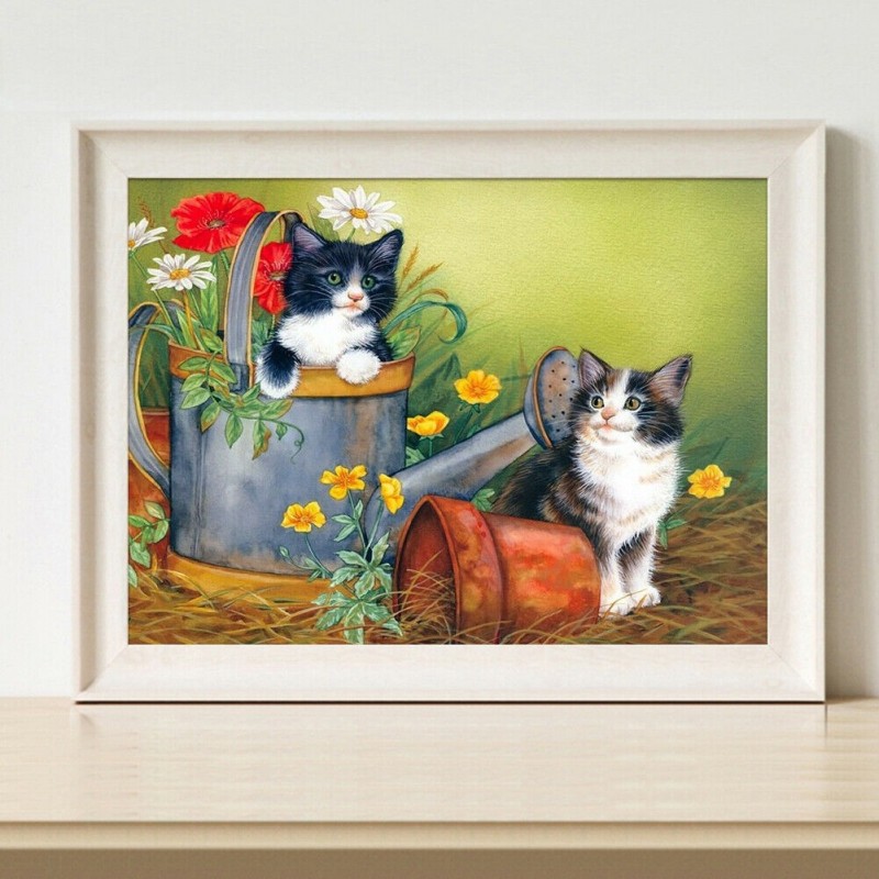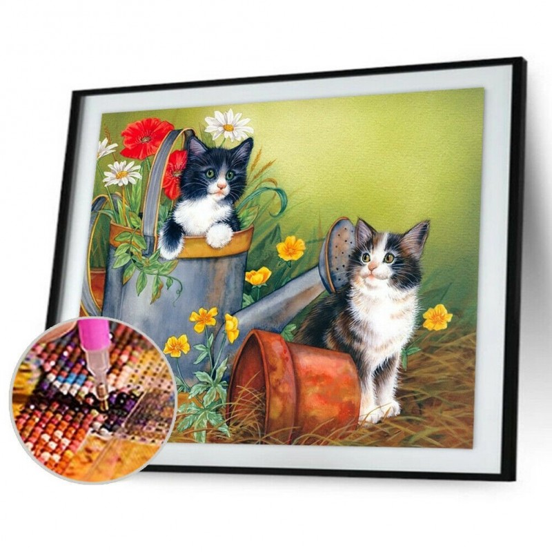 DIY Color Cats Flower Pot Animal Picture House Wall Decor Mosaic Rhinestone Drawing Full Round Drill Diamond Resin Painting Kit