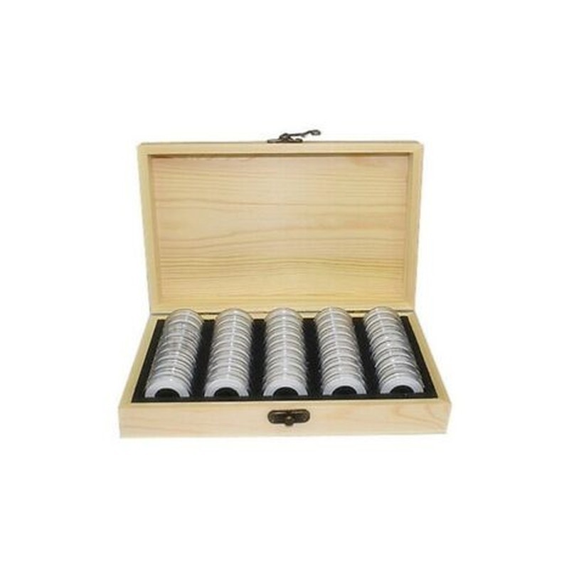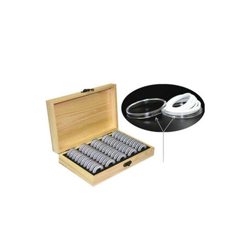 1X(50 Coin Storage Boxes Round Coin Storage Wooden Box Commemorative Coin CS6E3)