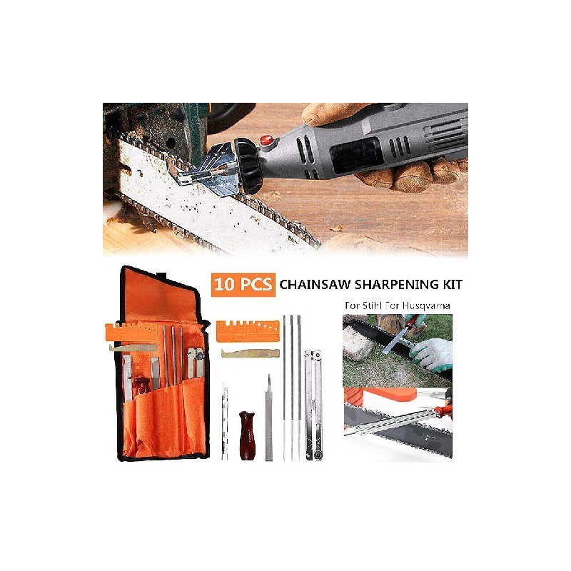 10PCS/Set Chainsaw Chain Sharpening Kit Electric Chainsaw File Flat File Guide Bar Sharpener Tools