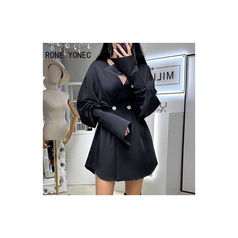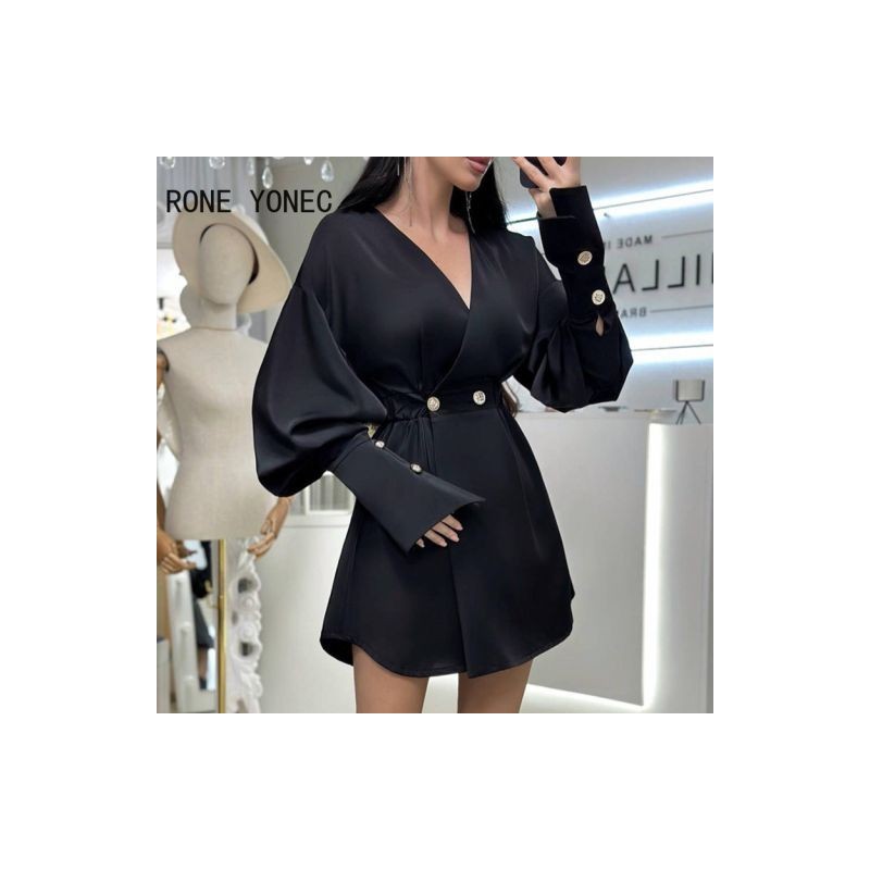 Női ruha 2023-as alkalmi, tömör Gigot ujjú, hosszú ujjú, V-nyakú, vonalas ruha