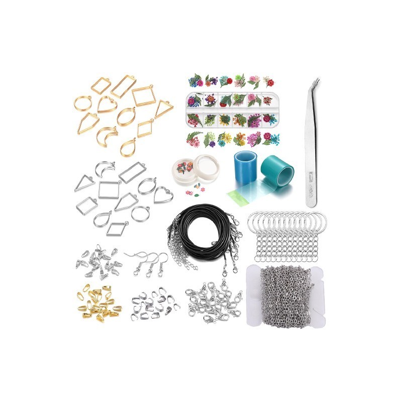 1 Set Mixed Style Geometric Hollow Glue Blank Pendant Tray Kit Epoxy Resin Earring Keychain Necklace Set For DIY Jewellery Making